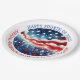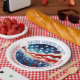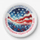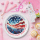 Abstract US flag ai art. Patriotic stars ands stripes red, white and blue Fourth of July party personalised paper plates.