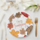 Happy Friendsgiving Paper Plates with colourful whimsical colourful fall foliage leaves. Fun Friendsgiving home entertaining products.