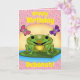 A happy frog makes up this fun birthday card. Customisable so you can add your own text and change the background colour.