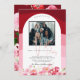 Fun, modern "Happy Galentine's Day" brunch invitation featuring beautiful pink and red colour scheme with florals, script font overlay, and your own photo. Add your choice of personalisation.