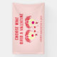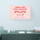 Decorate for best friends on Valentine's Day with this Happy Galentine's Day Valentines Party Fun Wine Banner. It is designed with two cute girls having wine and they have wild red hair and hearts. The text is "choose wine over a valentine" and "Happy Galentine's Day" in dark dusty rose lettering. The background is blush pink. This design was created from a personal drawing.
