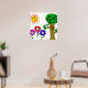Happy garden poster for kids with smiling flowers, tree and sun.