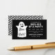 Happy Ghost, Black Halloween Party Ticket Invitation Cards by The Business Card Store. Great for all kinds of Halloween events. High School, Office, Restaurants, Birthdays e.t.c