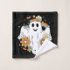 Towel set with an illustration of a smiling ghost. Decorated with flowers, rainbows and bats.