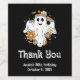 Thank you birthday or other event bottle labels with an illustration of a smiling ghost. Decorated with flowers, rainbows and bats.