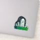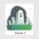 This is a cute sticker design made of an illustration of happy ghosts wandering in a graveyard.