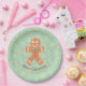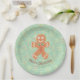 Cute Christmas paper plates with gingerbread man and a festive cookie background.