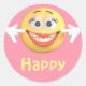 The classic yellow emoji "Happy" cartoon facial expression emoticon with the word happy written under the face. Edit the text, font, size, and colour easily with provided filliable template. Pick up some of these quality stickers today!