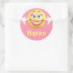 Happy Girl Emoji Emoticon Cartoon Face Classic Round Sticker