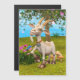 3D rendering of a happy cartoon goat on a fantasy garden background