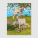 3D rendering of a happy cartoon goat on a fantasy garden background