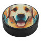 This happy Golden Retriever illustration is a great design for dog lovers and Golden Retriever owners. It has a blue-green background colour and it suits to most colour combinations.