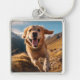 Happy Golden Retriever Running Key Ring