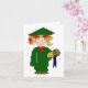 "HAPPY GRADUATION" GIRL DRESSED IN GREEN CAP AND GOWN HOLDING HIGH SCHOOL DIPLOMA