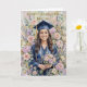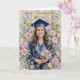 Send your graduate the most beautiful card she has ever received. This stunning Class of 2026 graduation greeting card features an original oil painting-style portrait of a smiling young woman in a navy cap and gown, surrounded by a lush garden of blush roses, lavender, soft peonies, and pastel blooms in full celebration.