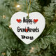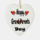 Happy Grand Parent Day heart shaped ceramic ornament with large black print and 3 red hearts. Great gift idea.
