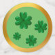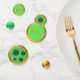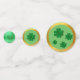 Happy green clovers on green background with golden frame table confetti. Ideal for birthdays, Saint Patricks Day, anniversary, and any other lovely celebration. All text can be personalised.
