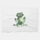 White kitchen towel with the happy green frog design of my own authorship. This is a print from my original animal watercolor painting titled "Watercolors". One of a kind. You will love the towel!!!