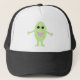 A cartoon of a smiling green grape with shiny black eyes and a pink mouth. An adorable little character that kids are bound to love.