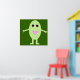 A cartoon of a smiling green grape with shiny black eyes and a pink mouth on a dark green background.