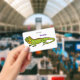 Happy green iguana cartoon illustration ID badge
