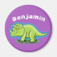 Our happy green triceratops dinosaur is drawn in a fun, bright cartoon style.