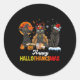 Happy Hallothanksmas Black Cat Halloween Thanksgiv Classic Round Sticker