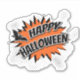Happy Halloween comic style illustration with text design, bat and stars decoration on halftone background