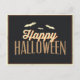 Grunge, vintage strong typography, travel poster style postcard happy halloween postcard.