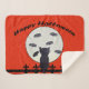 Happy Halloween Black Cat Fence Moon Flying Bats Sherpa Blanket