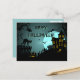 Funny Halloween postcard with haunted house and black cat. Text can be easily changed to suit your needs. Original design by Ruxique.