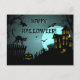 Happy Halloween Black Cat Haunted House Blue Postcard