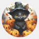 Happy Halloween Black Cat Pumpkins Classic Round Sticker