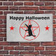 Happy Halloween Black Cat Stars Pentagram Grey Banner