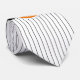 This necktie design features a black Halloween cat on an orange and black label with the text 'Happy Halloween' in white. Background is a narrow black and white striped pattern. Personalise with your name or other text. Search ID686 to see other products with this