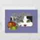 Green-eyed black cat peeking behind an Art Nouveau flourish complete with pumpkin accent and Halloween greeting. Artist, Margaret Loftin Whiting, classic style.