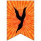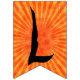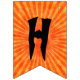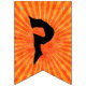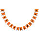 These Halloween party bunting flags say, "Happy Halloween!" in creepy black text on an orange ray background. On the flag between the words, there is a silhouette of the headless horseman on a horse and holding up a pumpkin head. Decorate your Halloween party with these bold bunting flags.