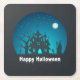 Happy Halloween Blue and Black Haunted House Square Paper Coaster