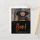 The Happy Halloween Boo! Family Photo Card uses the popular faux orange foil typography. The name and photo can be replaced on the Halloween Photo Card.