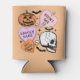 Colourful Halloween illustration with skulls, bats, stars, pumpkin and candy hearts decoration with "Spooky babe", "Hunt me" and "Hot Ghoul" text designs