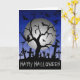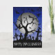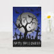 Halloween illustration with tree, bats, owl and gravestone decoration at full moon