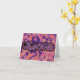 Wish your favourite ghoul-pals a happy Halloween with this adorable purple, orange, and black card featuring a black cat, bats, spiders, spooky candles, and even a cute little ghost on a background of fall leaves.