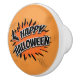 Happy Halloween comic style illustration with text design, bat and stars decoration on halftone background. It is possible to change the background colour and to add different one to the design with your choice.