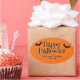 Custom Happy Halloween sticker featuring a cobweb and bats. Easily personalise this Halloween sticker with your family name. This Halloween card can be turned into any colour using the customisation tool.