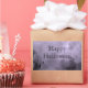 A spooky Halloween sky with misty trees along a dark haunted road, gothic ravens and a cloudy full moon with a deep violet tint. Click Customise It to change fonts, sizing and more, even save your design for later.