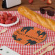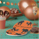 Happy Halloween black cats on an orange background on paper plates for the Halloween party night.
