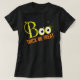 Fun Halloween Women’s T-Shirt featuring the word Boo with big, spooky eyes.