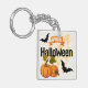 Happy halloween design with bats and pumpkins. This design looks really effective on these Keychain