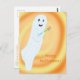 Awesome friendly ghost presenting a rose on a yellow and orange swirl background, with Happy Halloween in orange, is printed on custom postcards. Thank you for shopping at CherylsArt on Zazzle.