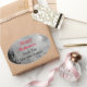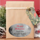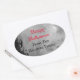 A custom Happy Halloween sticker in red blackletter and black rustic letters against a Halloween sky with misty trees, gothic ravens and a cloudy full moon in black, white and grey.
